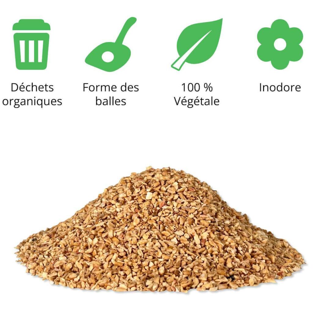Sac de 10 Litres de litière siria agglomérante. Il s’agit de maïs.